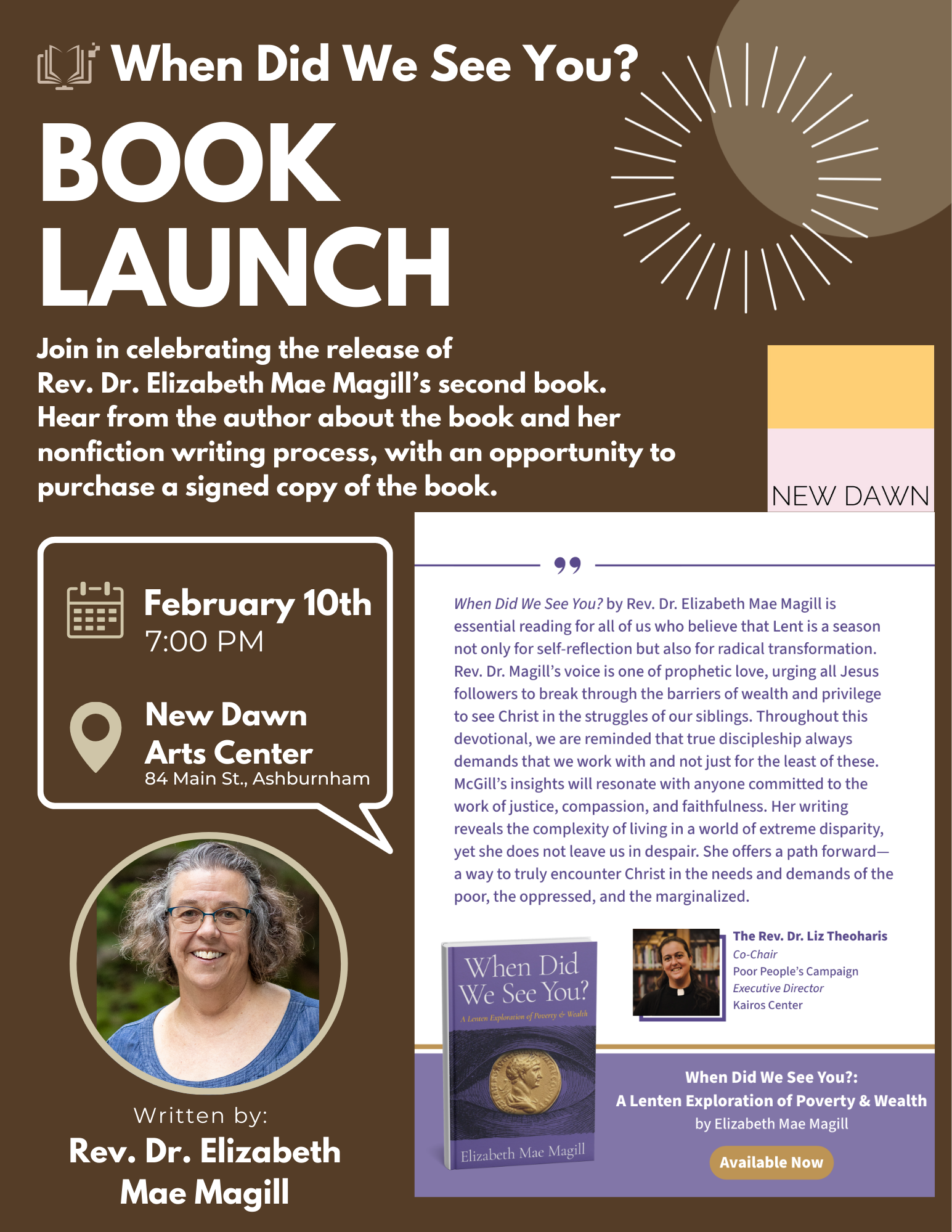 Join in celebrating the release of Rev. Dr. Elizabeth Mae Magill’s second book. Hear from the author about the book and her nonfiction writing process, with an opportunity to purchase a signed copy of the book.