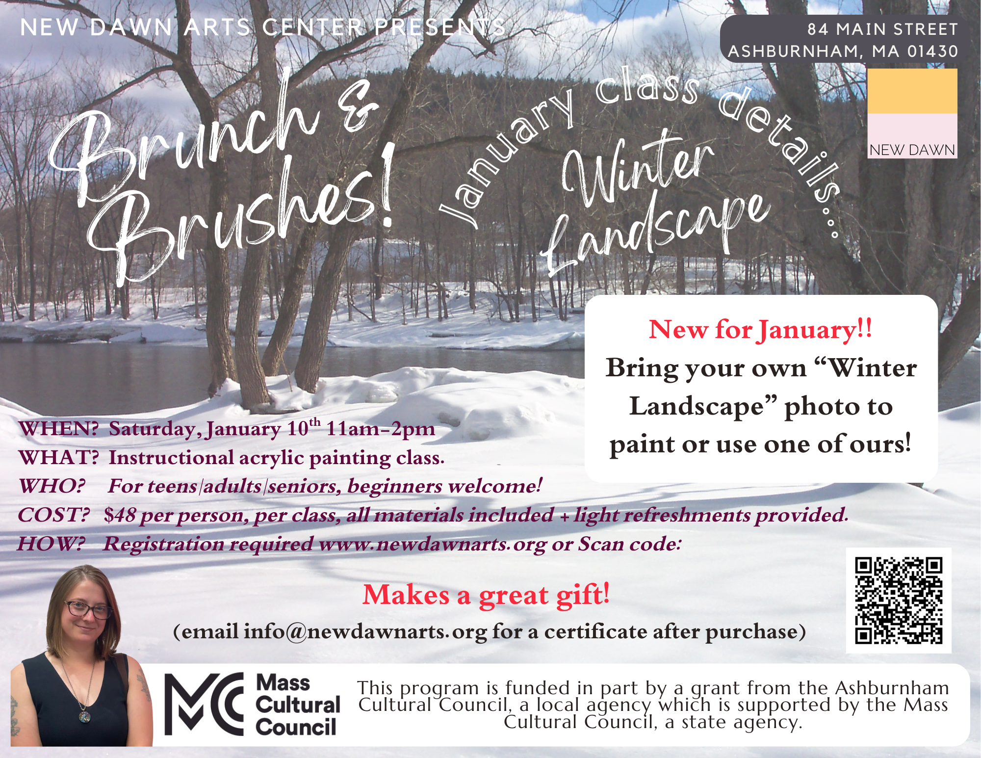 January 10 (2nd Sat.) │ 11am -2 pm - NEW!! Bring your own Winter Landscape Photo (or use one of ours) to paint from!
