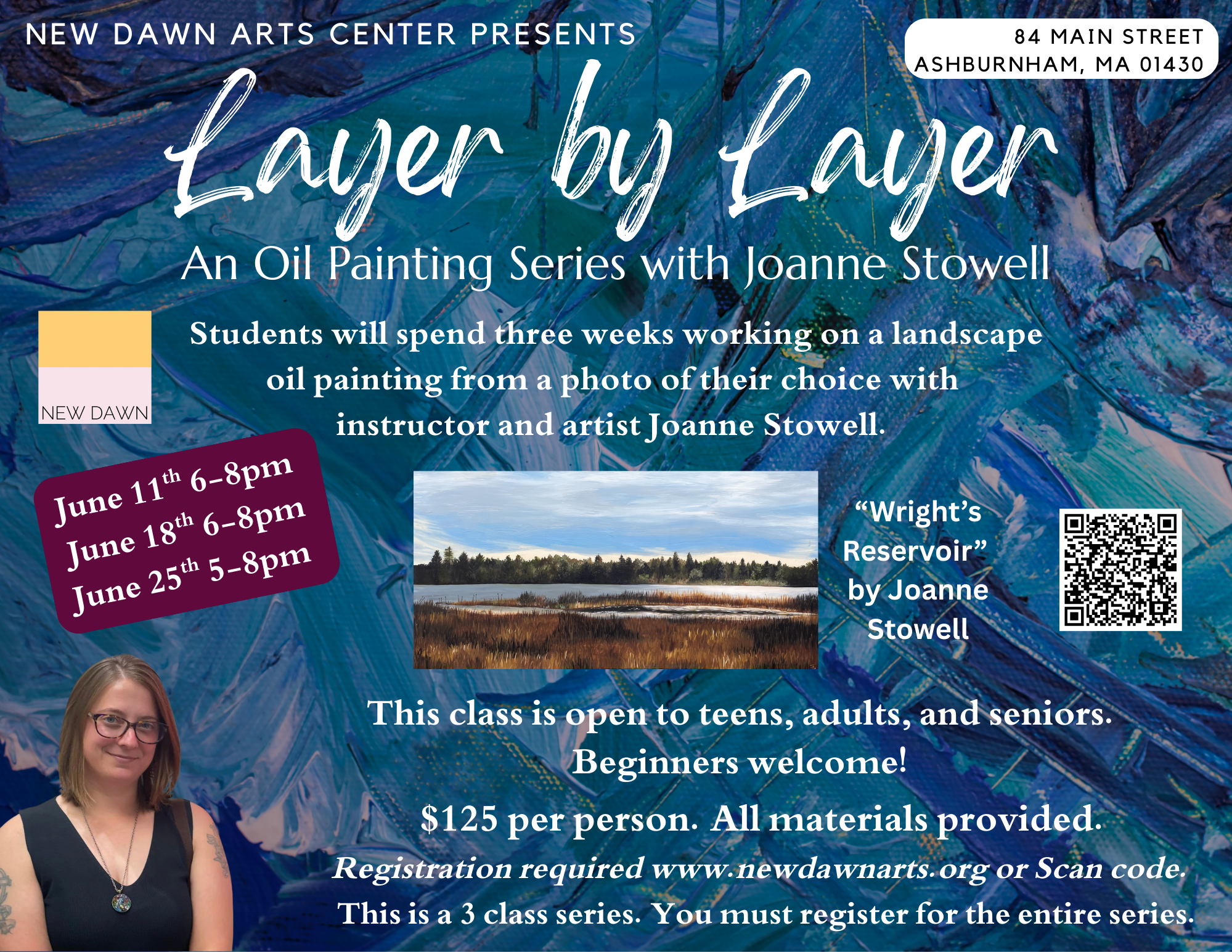 Students will spend three weeks working on a landscape oil painting from a photo of their choice with instructor and artist Joanne Stowell.