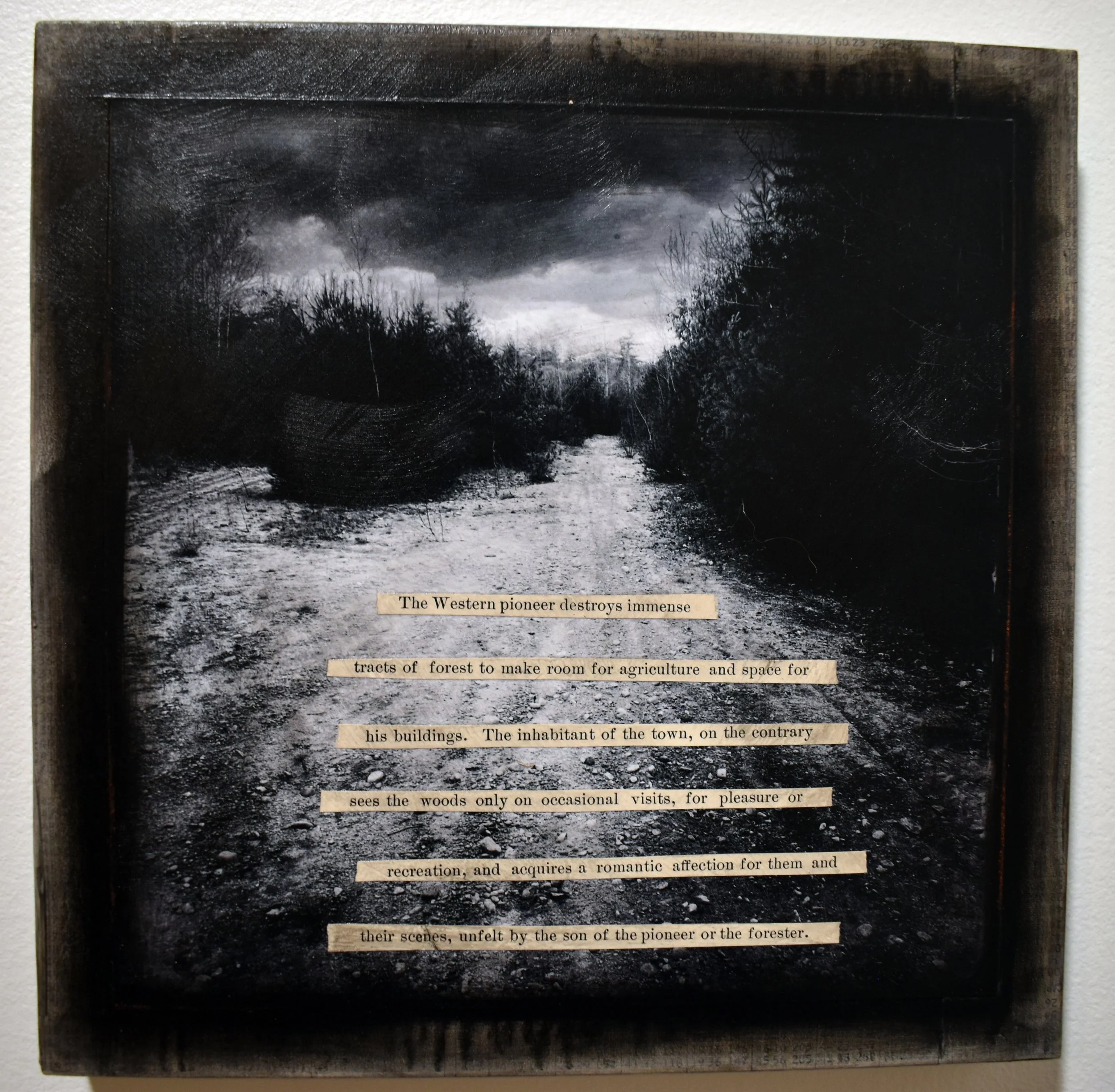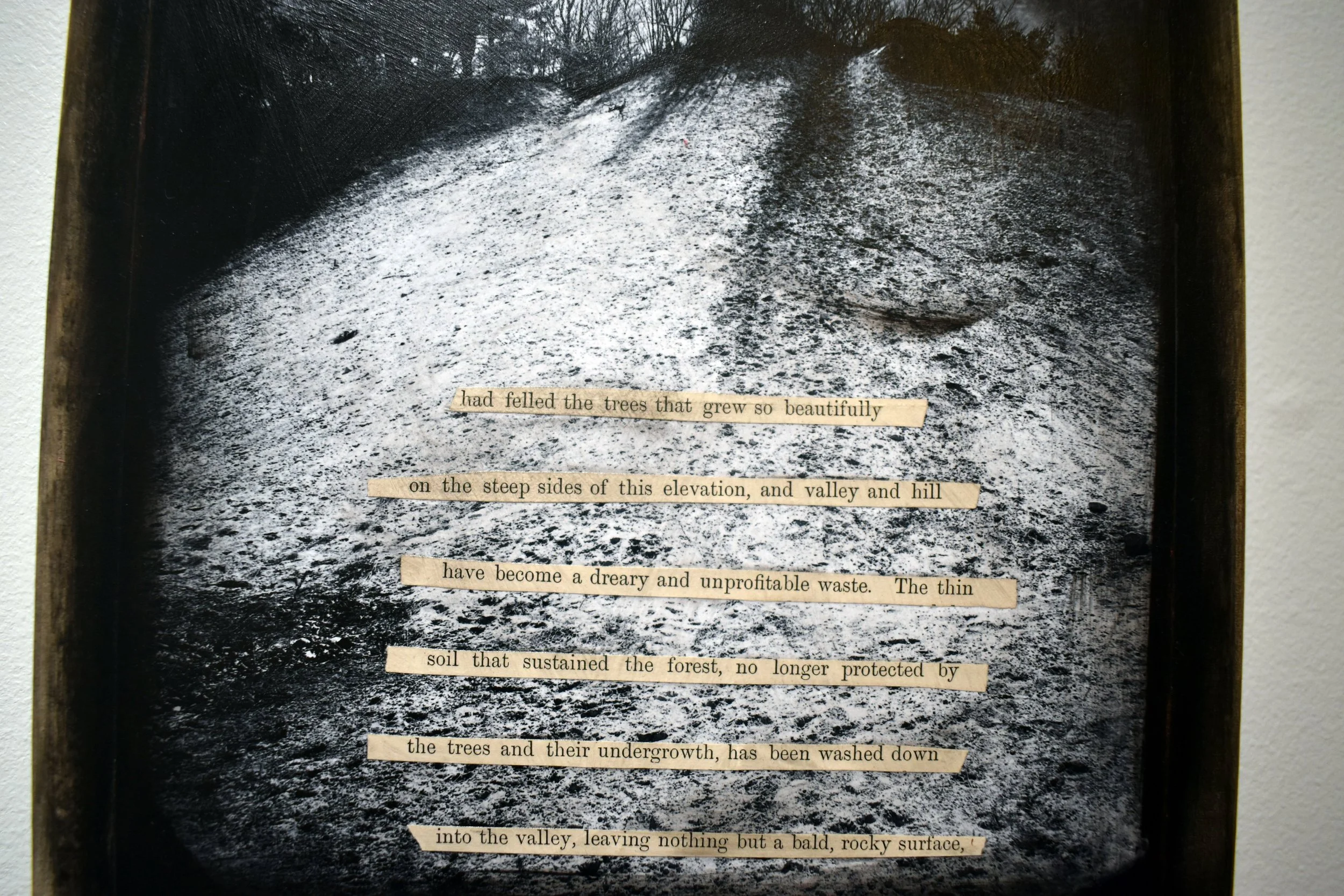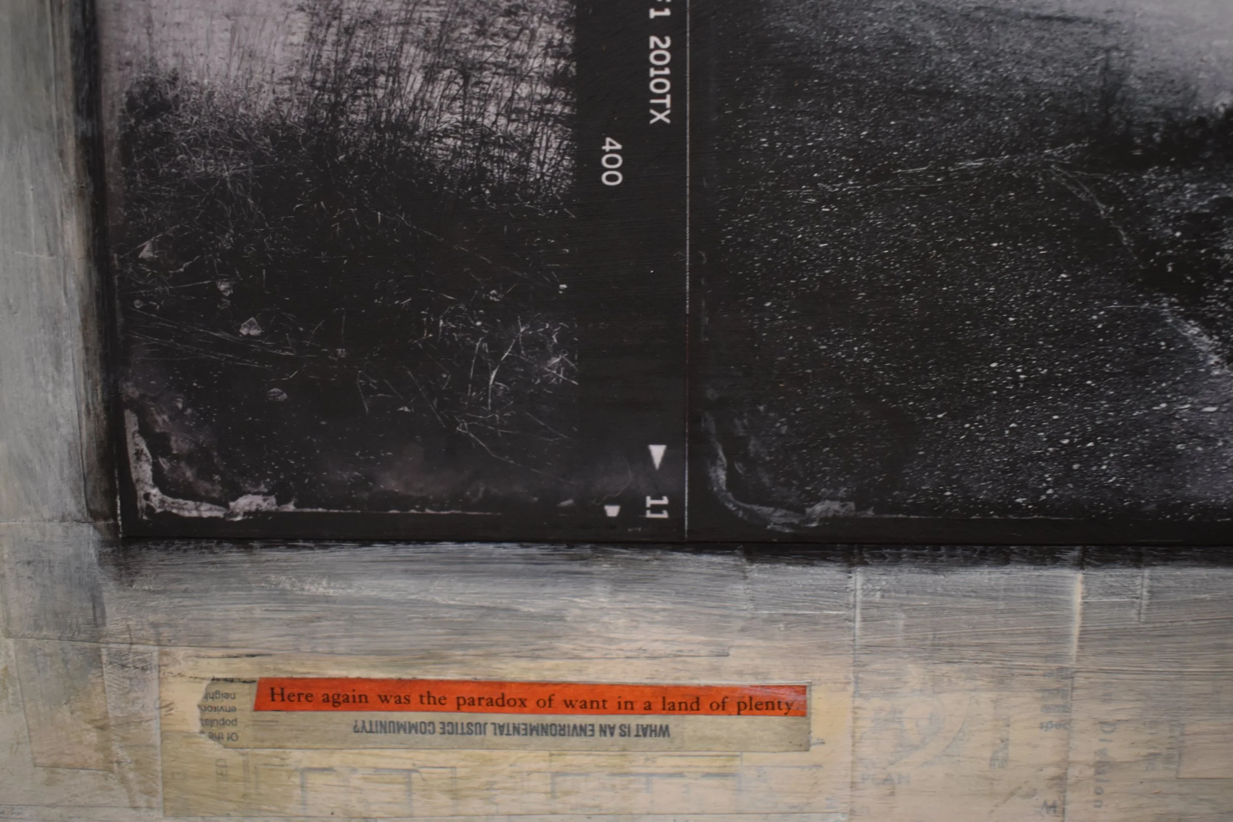 My work for this project is primarily photographic, combined with acrylic paint and pastels, and collaged with pages from antique bibles, celestial navigation charts, vintage prefab home catalogs, and the planning report for Keyes. I include excerpts from the writings of the nineteenth-century naturalist Wilson Flagg and contemporary environmental historian William Cronon as signposts tracking how our understanding of the local environment has changed over the centuries, and how this history shapes our experience of the land. My artwork is where I negotiate my own ambivalent feelings toward places like Keyes. Will our human nature ever allow us to feel truly at home in our natural habitat? I have no answer to this, but I believe it is crucial for our survival to dedicate ourselves to grappling with the question.